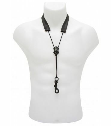 Alto/Tenor/Soprano nylon neck strap with snap hook. MATERIAL: Sangle, ficelle. FINISH: Double sewing, with cut and hand burned felt. COLOUR: Black. Size: Large for female/male